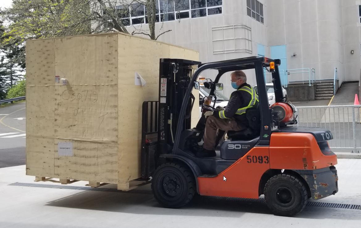 Unloading of the TMT Refrigeration Unit in Victoria, Canada - May 2021 - Image credit: NRC Herzberg Astronomy and Astrophysics Research Center