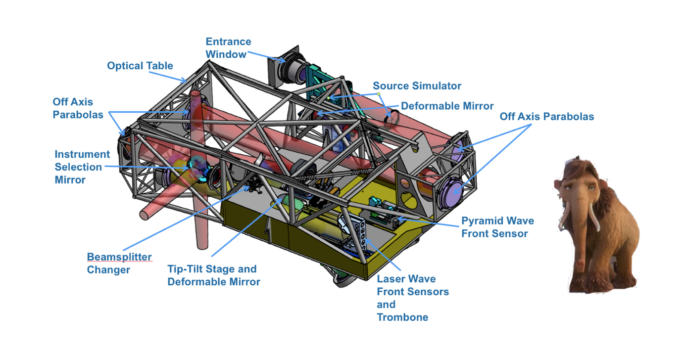Layout of TMT’s Narrow-Field Infrared Adaptive Optics System. Teenage mammoth shown for scale.
