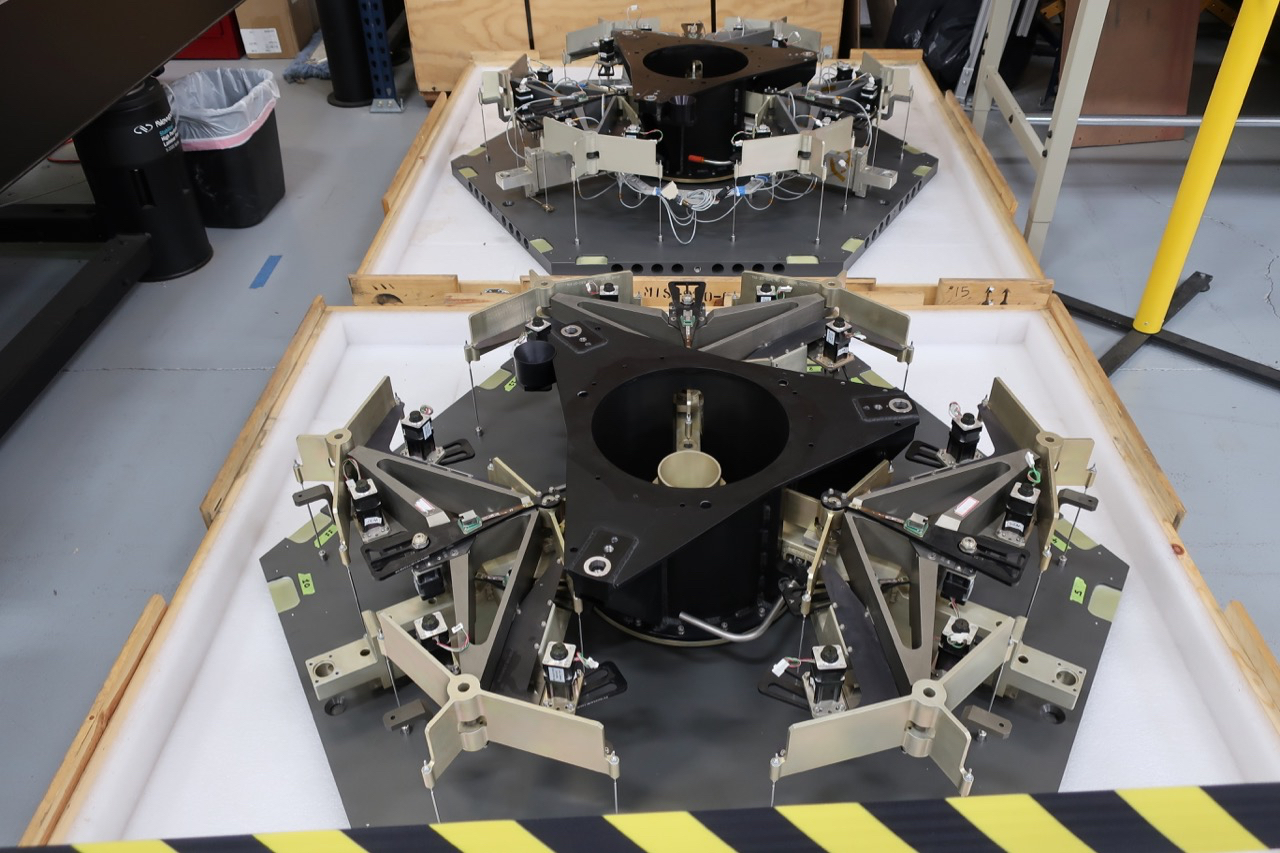 Prototypes of two TMT Primary Mirror Assemblies mounted on aluminum segment. These prototypes were assembled at the technical lab near Pasadena in California. Image Credit: TMT International Observatory