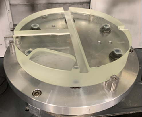 These processes include cutting the roundel outer perimeter and pocketing the back side of the mirror segment with sensor pockets and central diaphragm cavity. These features are used for bonding the glass segment with its mechanical support assembly.