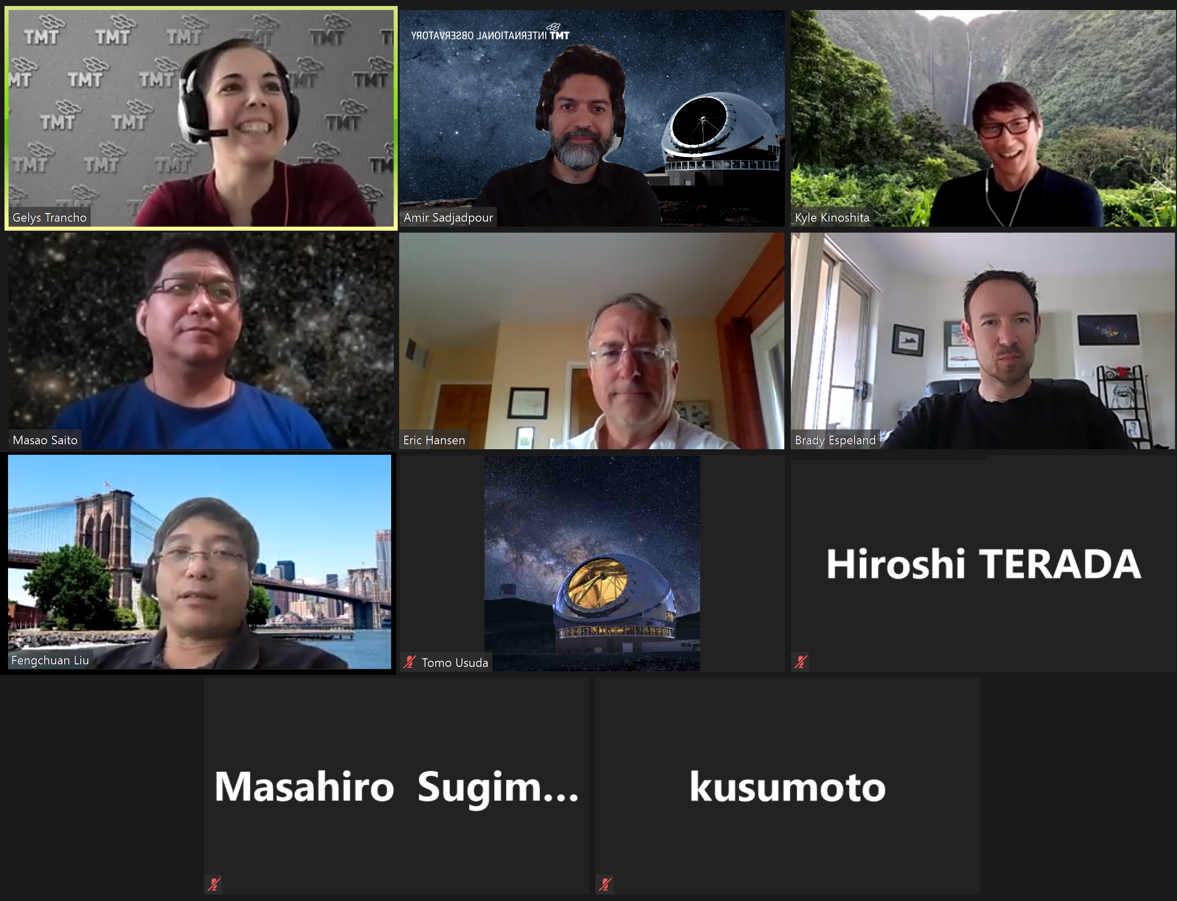 Screenshot of the participants of TMT Telescope Structure Readiness Review 1 closeout meeting, on April 5, 2021 - TMT Project Office and National Astronomical Observatory of Japan telescope structure team engineers meet virtually for closing out the first of six production readiness reviews for the Telescope Structure Subsystem - Image credit: TMT International Observatory