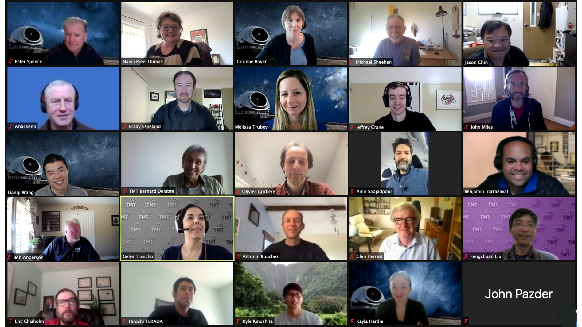 Screenshot of the TMT’s Laser Guide Star Facility (LGSF) Preliminary Design Review phase 1 participants on April 27, 2021 - Nearly 30 engineers and scientists attended the remote review. The international review panel included experts from ESO, Keck, NRC and TIO astronomy communities - Image credit: TMT International Observatory