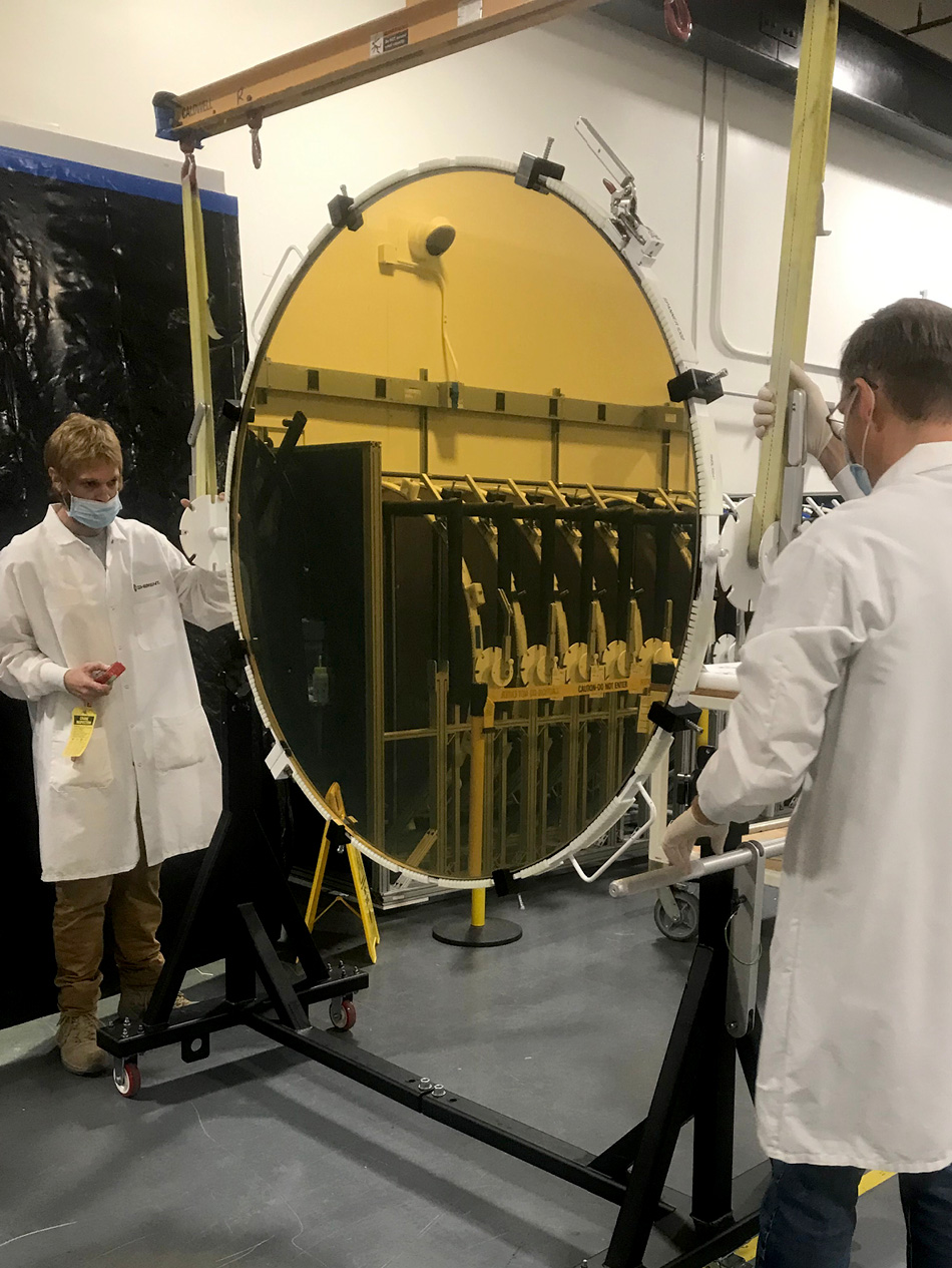 Figure 1. Large telescope mirrors, such as the James Webb Space Telescope primary shown here, are often composed of numerous hexagonal segments placed close together (within 2 mm). Image courtesy of NASA Goddard Space Center.