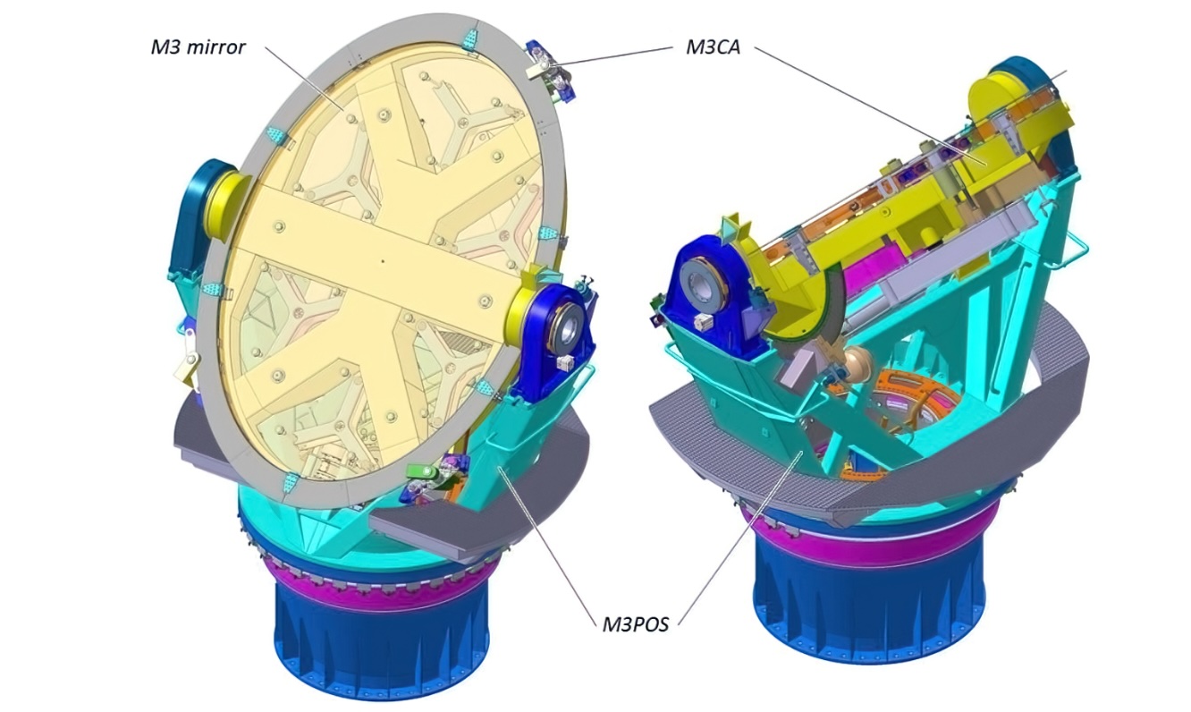 The Advanced Mechanical and Optical Systems (AMOS, Belgium) and TIO teams collaborated closely on the tertiary mirror design, carried out in parallel with the final design of the Secondary Mirror Support System and Positioner Assembly (M2SSP), which AMOS completed in June 2025.