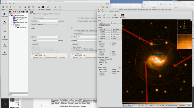 "Phase 2" corresponds to the process of preparing and executing the observations. Regardless of their observing mode (visitor or service), the PIs must use TMT-provided tools to prepare their observations ahead of time with sufficient details for execution by the support astronomer (6). A prototype Phase 2 planning tool for IRIS based on the Gemini Observing Tool is shown below.